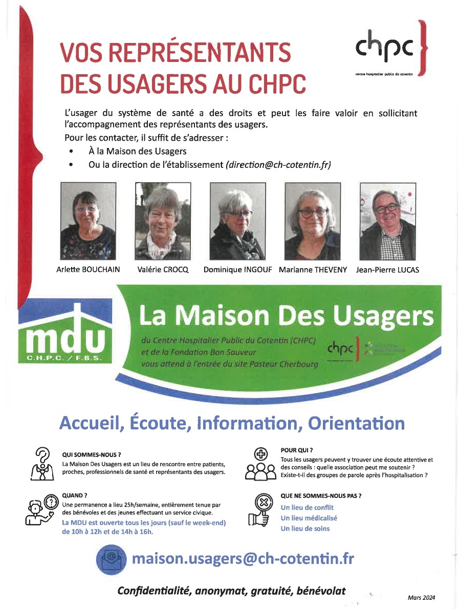 La Maison des usagers – Vos représentants des usagers au CHPC